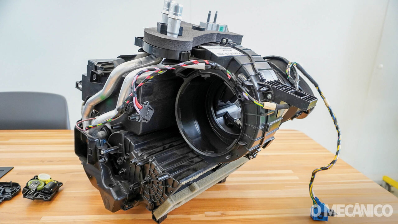 Borbon também explicou as diferenças entre sistemas de uma, duas ou quatro zonas. No monozona, há apenas um conjunto principal de misturador e sensores. No bizona, a caixa de ar é dividida internamente, permitindo controle independente para motorista e passageiro. Já o quadrizona adiciona um evaporador traseiro e novos atuadores. “O princípio de diagnóstico é o mesmo, mas a complexidade aumenta conforme o número de zonas”, disse.